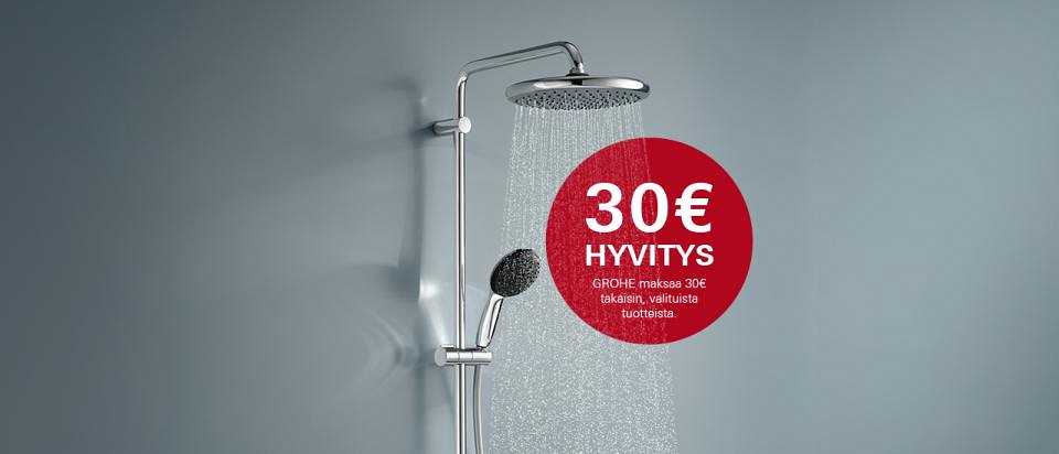 Haluamme, että jokainen voi nauttia GROHEn laadusta ja mukavuudesta kotona. Siksi tarjoamme 30 euron rahapalautuksen seuraavista tuotteista: (GROHE nro. 26830001, 30495001 ja 23773001). Tarjous koskee ainoastaan BAUHAUSista ostettuja tuotteita.